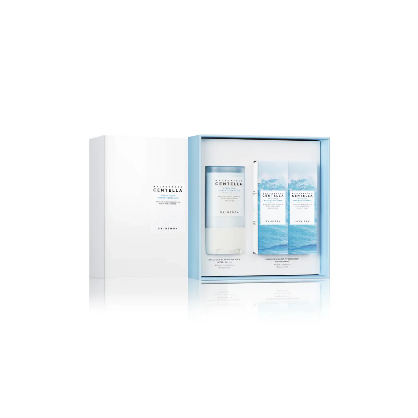 Hyalu-Cica Sunsational Kit is a complete sun protection kit designed to provide high, daily UV protection combined with intensive moisture and soothing care. The kit contains three Hyalu-Cica sun products that work together to protect the skin from UVA and UVB rays, while strengthening the skin barrier and keeping the skin comfortable all day long. Perfect for those who want light, effective and skin-friendly sun protection without a white cast or greasy finish.